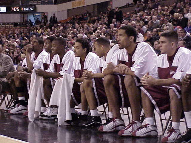 Big contributers to the UMass meltdown were guards Juan Pegues (13 points) and Jave Meade (10 points). Both stood solid at the line, hitting a combined 13-for-15. Meade, who went a perfect 6-for-6 from the stripe was also the key defender in holding Mack to only 13 points on four of 17 shooting. Mack and the Minutemen were held to just six points in the first 10:25 of the second stanza.