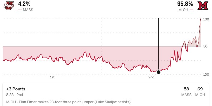 - Event: MAC Tournament Quarterfinal. Seeds: Miami #1, UMass #8