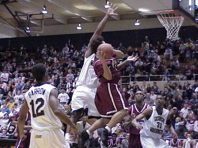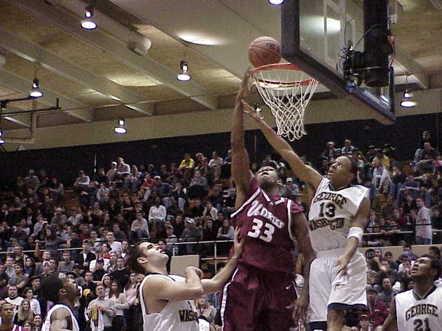 UMASS FANS IN ATTENDANCE: The normally tough-to-play-at Smith Center didn't have the atmosphere that it had for some previous UMass-GW games. Of the announced attendance of 4,100, a number of them appeared to be disguised as empty seats. There was a high percentage of Minuteman fans in the building as well.