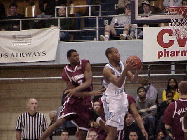 Kitwana Rhymer lets the defender go by and puts up the shot. (474k)