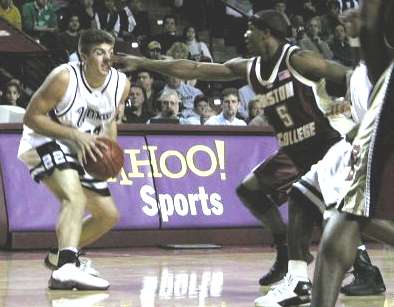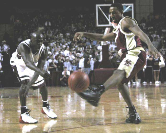 BC got major contributions from freshman Louis Hinnant and sophomore Jermaine Watson as the two guards did their part to take the load off Troy Bell and Ryan Sidney (now a small forward). Hinnant's second-half turnover was his only one in 61 minutes over the last two games. It came after he was hit on the arm by a small plastic bottle thrown from the stands.