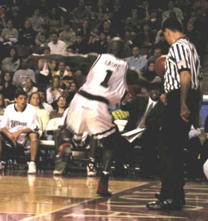 ![]() Lappas confers with the refs after the Rogers foul on Bell. |
