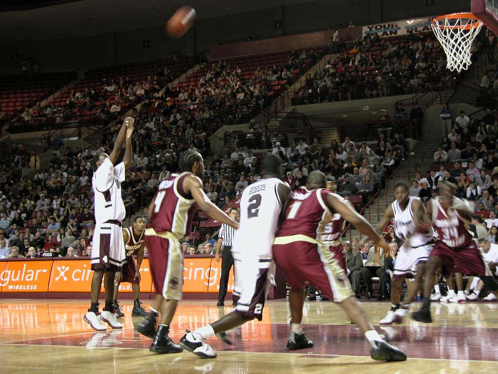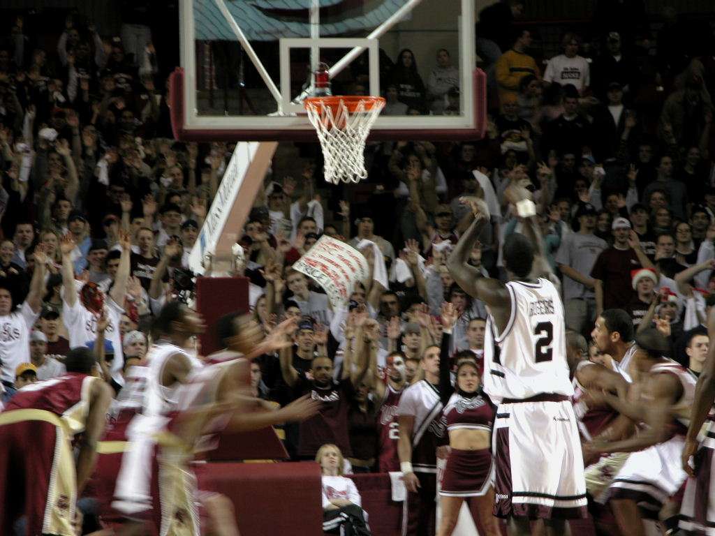 As he kicked up his heels, Sidney engaged some vocal UMass fans seated in the baseline end zone grandstands adjacent to BC's bench. Earlier in the second half, they had showered Bell with a chorus of vulgar chants when he sprang to his feet after he was grabbed around the neck and taken down to the floor by Jackie Rogers's intentional foul.