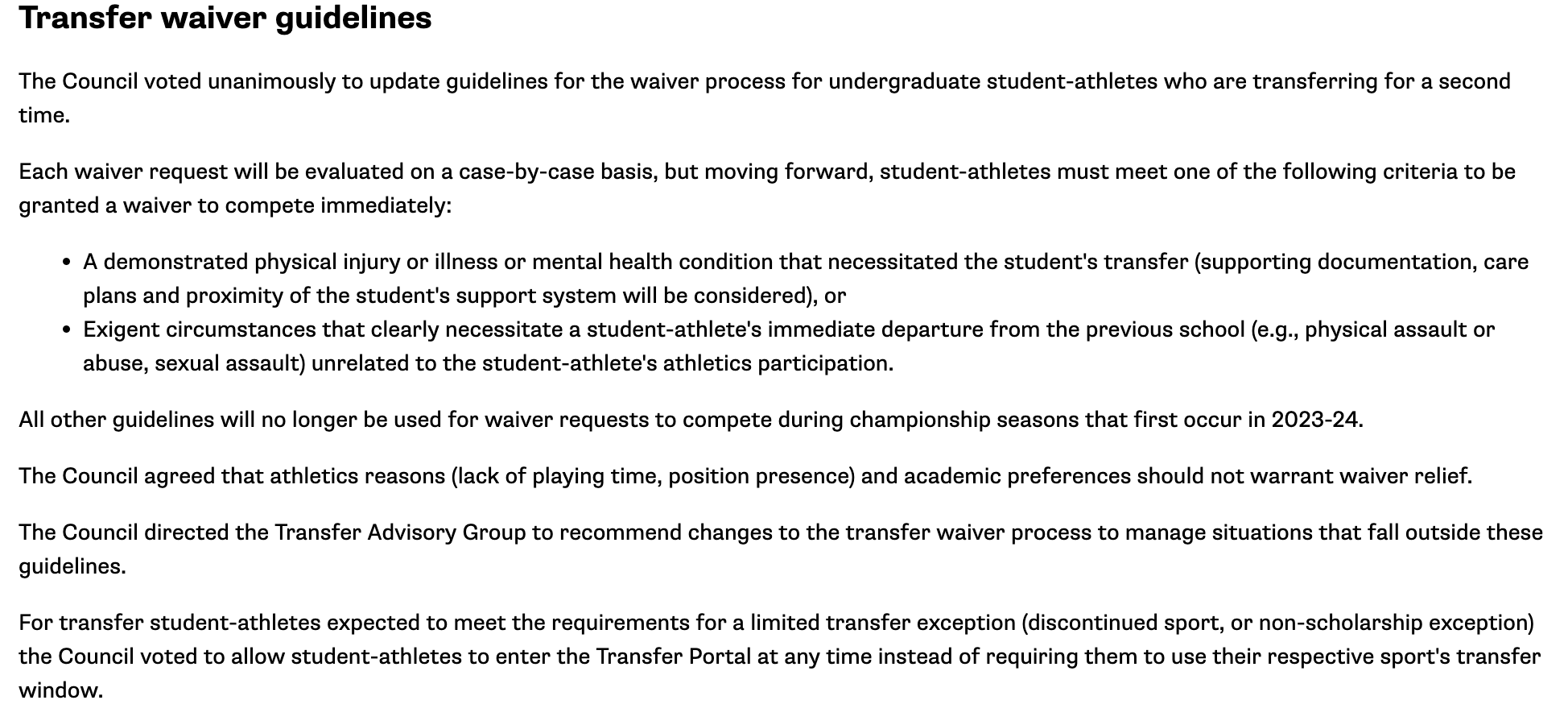 Thank you, this was what I was looking for. This is not a hardship case. The coach left before this season, you should not get an atta-boy for trying. Now he Ronnie D might have earned his degree then he can go for four schools in five years.skizz wrote: Fri Mar 31, 2023 12:56 pmThe 2x transfer waiver will be tested this year. Since Baker has taken over they have had a lot of talk of not being so free with waivers for 2nd transfers.I haven't heard of any no's yet but I also haven't seen any approved if they weren't grad transfers.MikeUMA wrote: Fri Mar 31, 2023 11:32 amThe NCAA has been giving out waivers to the 1-year sit out rule like candy on Halloween, so unless they change that course, he'll probably be eligible right away. He could argue the coaching change between his soph and junior seasons is a special circumstance.