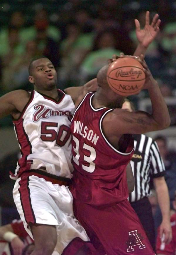 Arkansas, playing a trapping, full-court defense, rallied behind guard Kareem Reid and forward Lee Wilson. An 8-2 run got the Razorbacks within five at 15-10 with 14:06 to play. But Carmelo Travieso hit a three, Camby threw down a big jam off a Bright miss, and Travieso hit the front half of a one-and-one to take the lead back to 11, at 21-10, with 11:54 remaining.