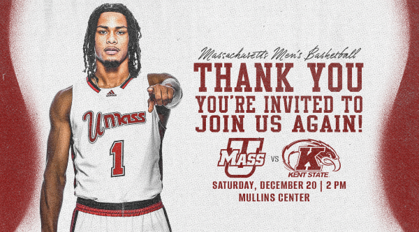 UMass Athletics would like to extend an additional complimentary ticket offer so you can join us again as we open play in the Mid-American Conference on Saturday, December 20 at 2 p.m. against Kent State at the Mullins Center. The Golden Flashes were picked third in the MAC preseason poll and are off to a strong 9-1 start.